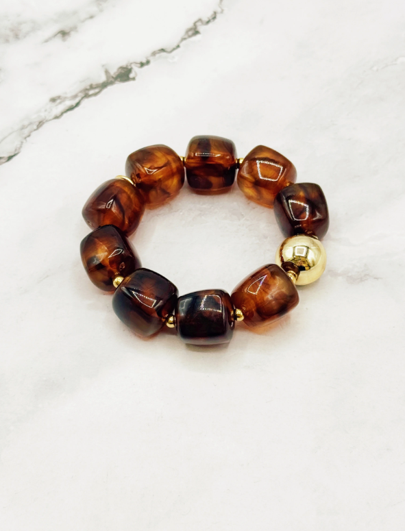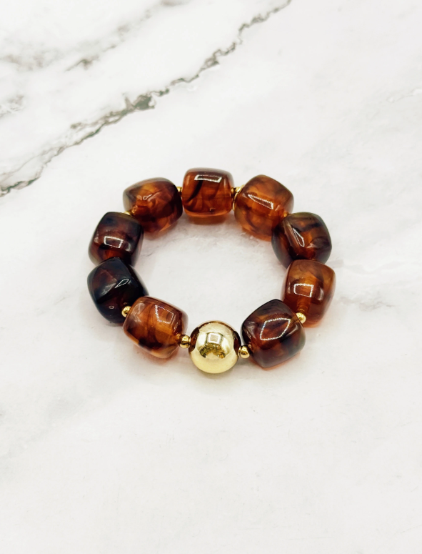 Laissez-vous séduire par l’allure contemporaine du bracelet, composé de perles cubiques en résine marbrée aux reflets profonds et naturels.